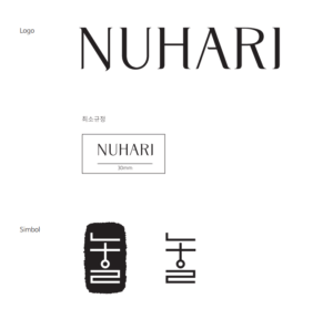 In addition, the emblem—derived from the Korean consonants ㄴ (N), ㅎ (H), and ㄹ (R) from the name Nuhari—can be used either alongside the logotype or independently, serving as a distinctive symbol of the brand’s identity.